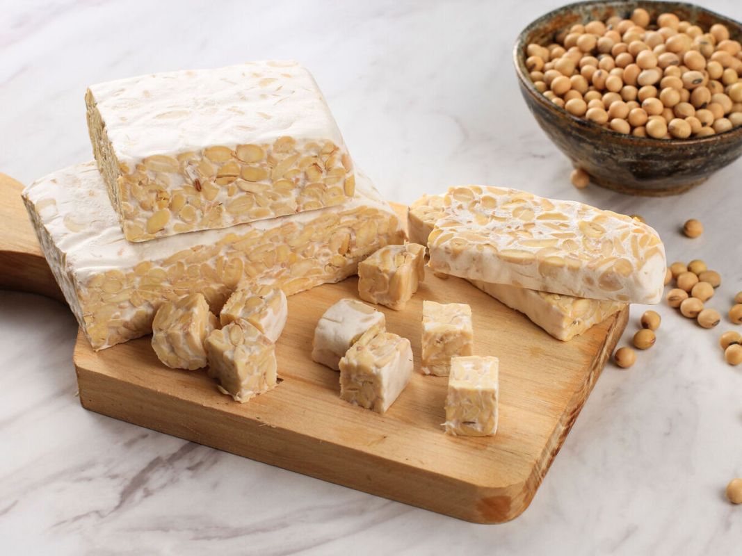 Selon le spécialiste, "le tempeh est un aliment incroyable pour notre intestin". Il explique que, pour un apport calorique équivalent, le tempeh contient davantage de protéines que la viande de bœuf (17,6 g pour 100 g) et qu'il est aussi une source de fibres (6,2 g pour 100 g). Une véritable nécessité pour votre régime alimentaire ! Pour le produire, les graines de soja subissent un processus de cuisson, de décorticage, puis sont inoculées avec un champignon et fermentées pendant environ 24 heures à 30 °C, favorisant ainsi l’émergence d’enzymes bénéfiques pour la digestion.