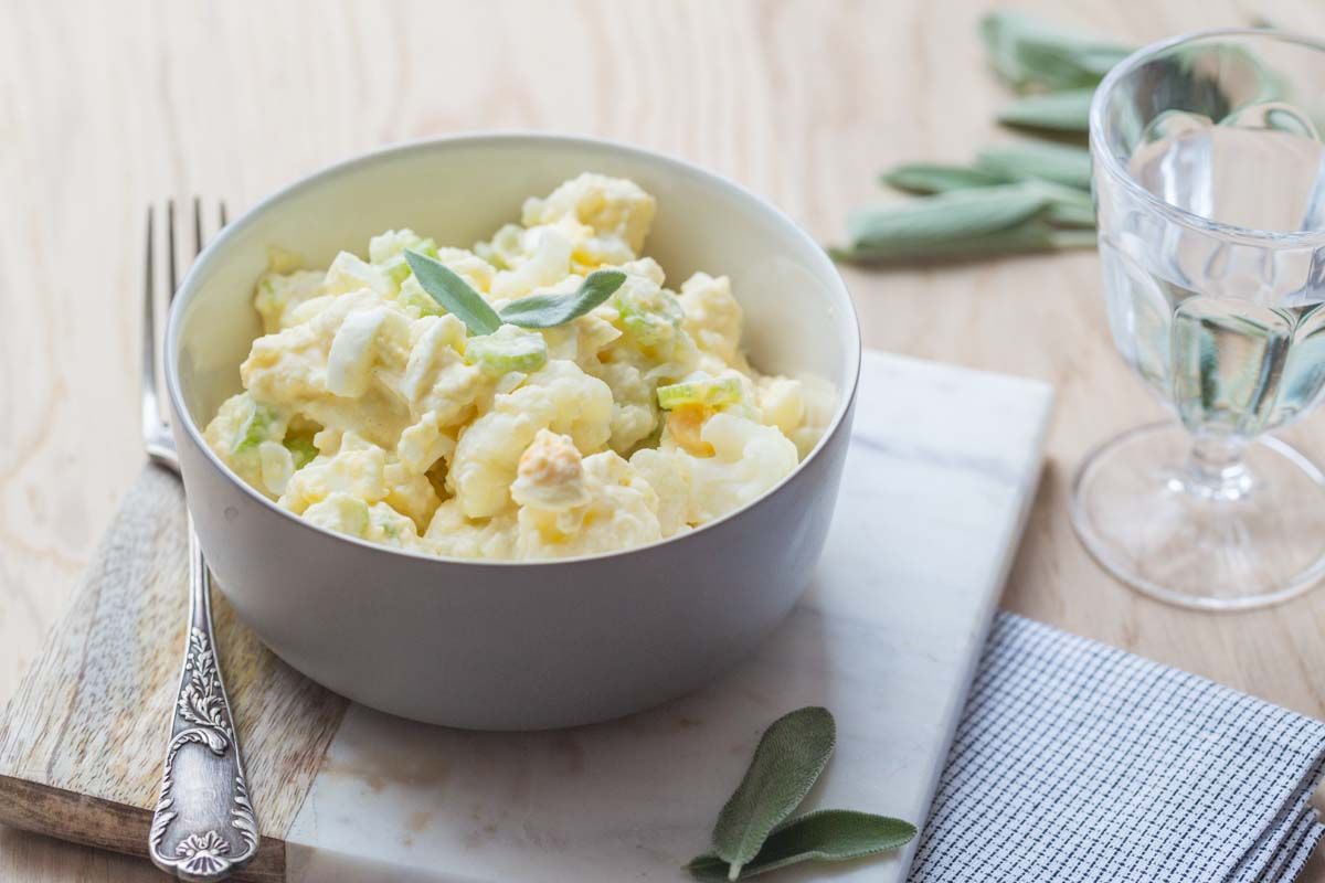 - Mélangez le chou-fleur, les oignons, le céleri et les œufs dans un saladier. Incorporez la sauce obtenue, mélangez bien et laissez reposer au frais au moins 30 minutes avant de servir.